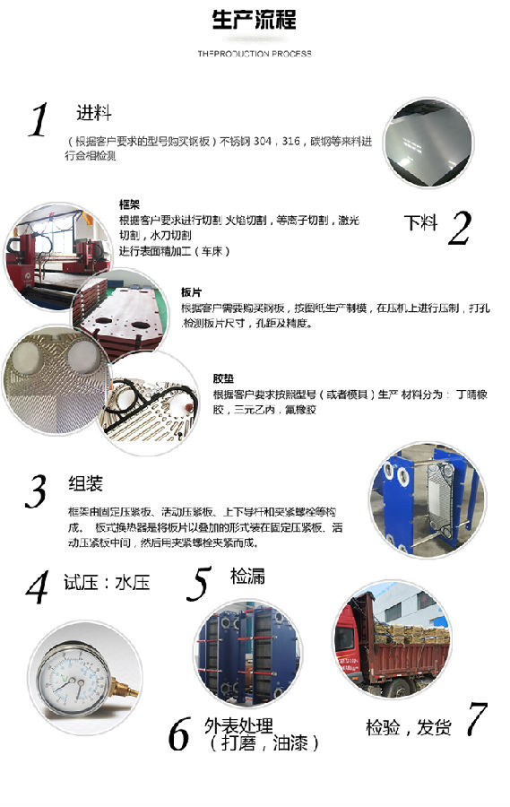 板式換熱器是由一系列具有一定波紋形狀的金屬片疊裝而成的一種新型高效換熱器。各種板片之間形成薄矩形通道,通過板片進行熱量交換。板式換熱器是液—液、液—汽進行熱交換的理想設備。它具有換熱效率高、熱損失小、結構緊湊輕巧、占地面積小、安裝清洗方便、應用廣泛、使用壽命長等特點。在相同壓力損失情況下,占地面積為管式換熱器的三分之一,熱回收率可高達90%以上。